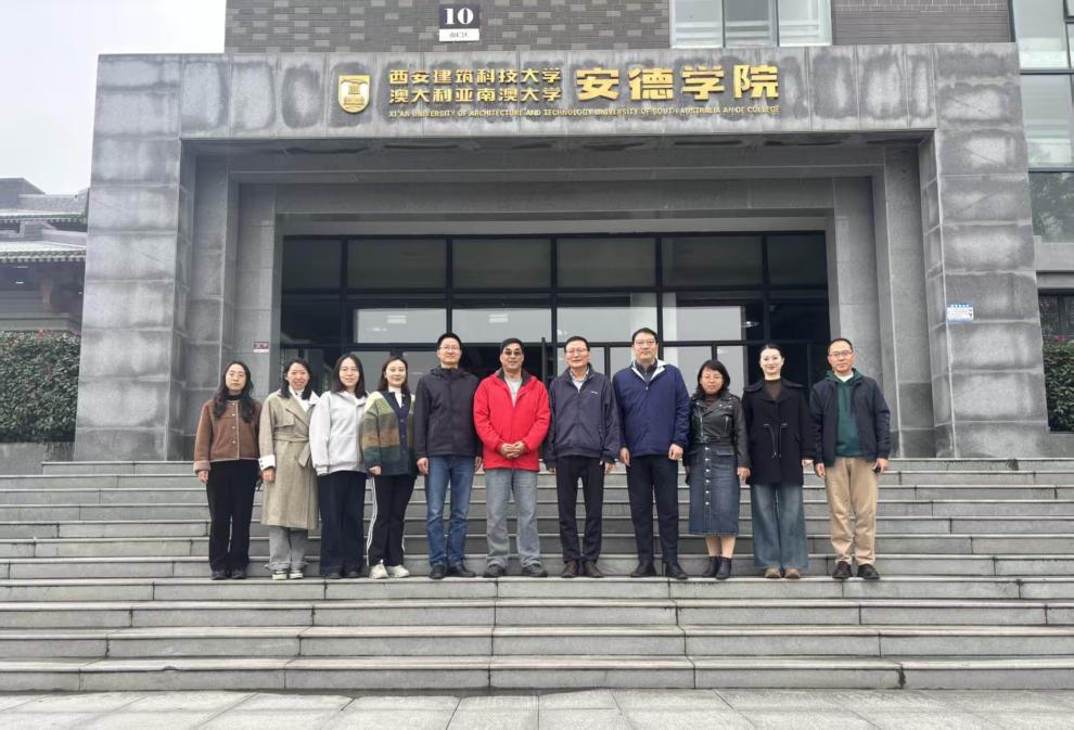 在西安建筑科技大学安德学院,执行院长熊仲明,副院长赵蕾、郑涛,党总支副书记张紫薇及相关负责人员参与交流座谈。熊仲明首先对金泉元一行的来访表示热烈欢迎,他表示,南航伦敦国际学院与安德学院在培养模式、管理体系架构方面有诸多共同点,希望两校不断深化交流合作,合力推动中外合作办学机构提升发展水平、打造优质品牌。随后,他从办学概况、办学成效、探索与展望等方面全面介绍了安德学院的基本情况。金泉元介绍了南航伦敦国际学院的基本情况,并提出目前面临的问题和挑战。会上,双方就经费管理、外方师资来华安排、人才培养激励机制等议题进行深入研讨交流。