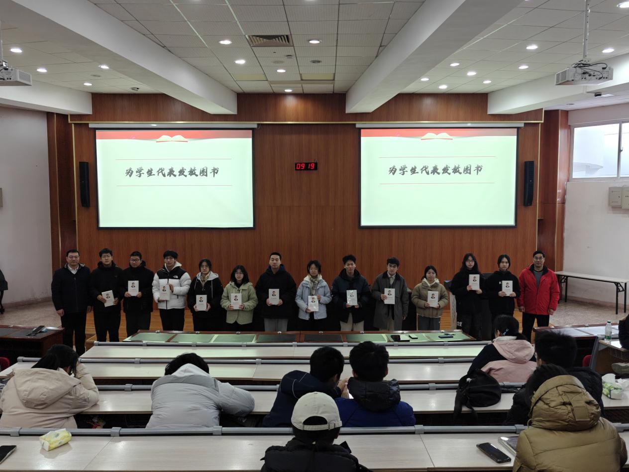 现场举行了温馨而庄重的赠书仪式,学院院长金泉元、副院长李勇为学生代表赠送经典著作。
